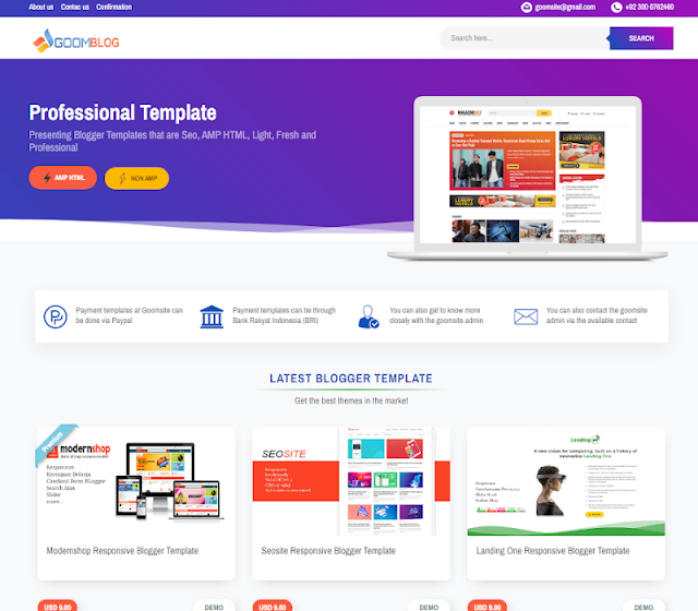 Modernshop Responsive Blogger Template adalah template Shopping terbaru di goomsite yang memiliki featur yang sangat lengkap. Dengan tampilan yang angat bersih template ini terlihat labih profesional. <br />