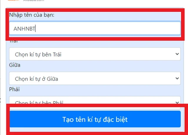 điền tên game bạn muốn đặt vào trong ô Nhập tên. Bạn có thể chọn thêm kí tự bên