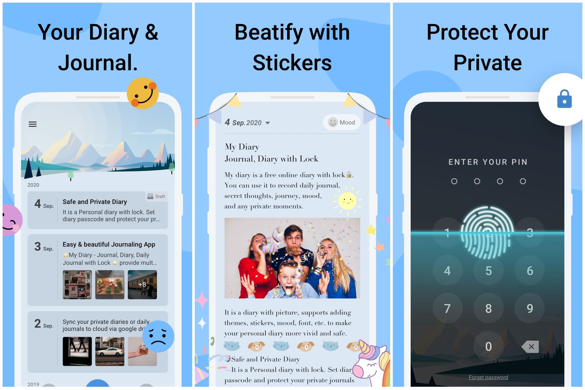 My Diary (Mod, Pro Unlocked) - Ứng dụng viết nhật ký có chức năng khoá vân tay vào bảo mật nhật ký miễn phí. My Diary là một app viết ghi chú trực tuyến miễn phí có mật khẩu. Bạn có thể sử dụng nó để ghi nhật ký hàng ngày, những suy nghĩ thầm kín, hành trình, tâm trạng và bất kỳ khoảnh khắc riêng tư nào. Nó là một cuốn nhật ký với hình ảnh, hỗ trợ thêm chủ đề, nhãn dán, tâm trạng, phông chữ, vv để làm cho nhật ký cá nhân của bạn sinh động và an toàn hơn. One Booster cũng có thể quét điện thoại của bạn để tìm các tập tin rác, bộ nhớ đệm cũng như dọn dẹp chúng để cải thiện tốc độ xử lý của điện thoại một cách rõ rệt.